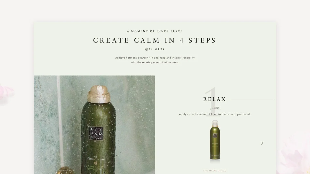 I was brought on as the visual and UX designer for the e-commerce site relaunch. The main idea was to bring the Rituals’ philosophy and their shop experience to the website and app. It was all about striking the right balance between that experience, functionality and conversion.